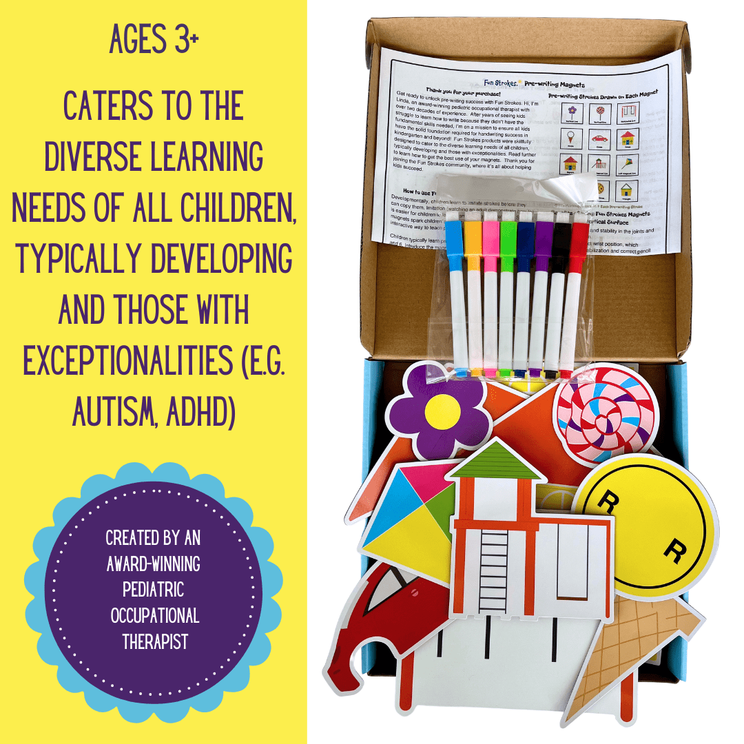Designed by an award-winning pediatric occupational therapist, Fun Strokes pre-writing magnets are the ultimate tool for preparing kids for the essential skill of handwriting. Their innovative approach builds a strong foundation for fine motor success in kindergarten and beyond.